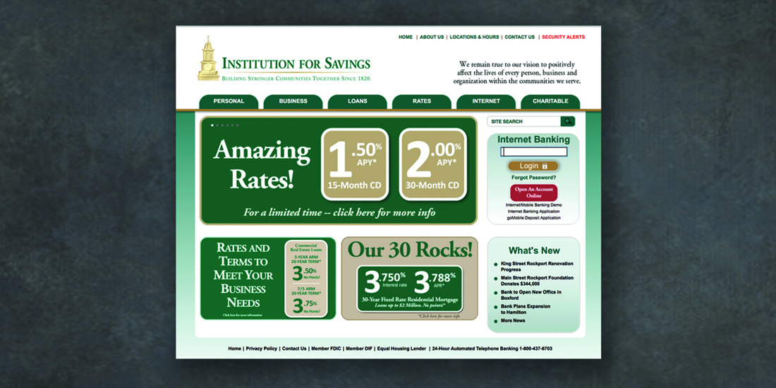 dehaas2021-10-15T17:33:09-04:00This regional, community-minded bank wanted a self-service WordPress site that would reflect their values and enable customers to easily explore their offerings. They wanted to highlight, add, and delete time-sensitive promotions as needed. Each slide and box is hyperlinked to the full product description. Staying true to their values, the site looks friendly and uncomplicated, while [...]